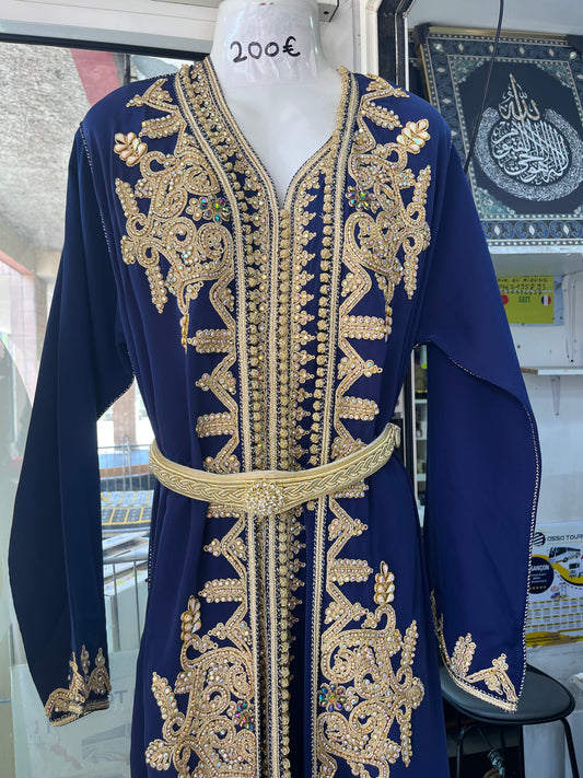 Abaya Kimono Bleu Ciel Élégante avec Ceinture Contrastée | Coupe Ample & Chic