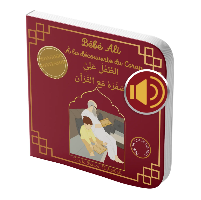 Bébé Ali découvre le Coran est un livre sonore musulman unique, spécialement conçu pour initier les tout-petits à l’écoute du Coran dès leur plus jeune âge, de manière douce, sensorielle et bienveillante.