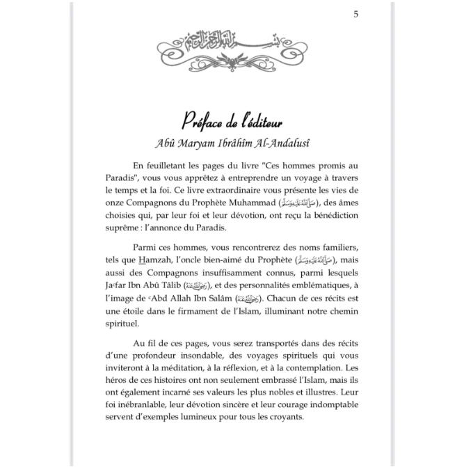 📚 Ces Hommes promis au Paradis est un ouvrage précieux pour toute personne souhaitant mieux connaître les compagnons du Prophète ﷺ, renforcer son amour pour eux et puiser dans leurs vies des exemples concrets de piété, de sacrifice et d’espérance en la récompense divine.