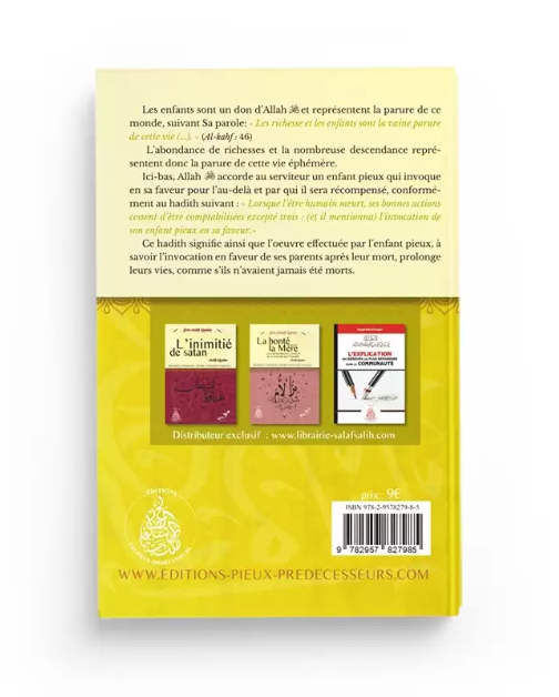 📖 À travers une explication méthodique et fidèle aux textes, ce livre détaille les droits des enfants en islam et les devoirs qui incombent aux parents. Il montre comment l’éducation islamique façonne non seulement le comportement de l’enfant ici-bas, mais prolonge également les œuvres des parents dans l’au-delà, comme si leur vie se poursuivait à travers lui.